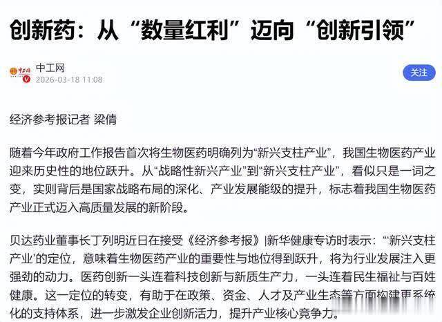 是以当今生物医药,径直被国度认定为新兴解救性产业,和航空航天、集成电路这些产业一样是中国经济发展的中枢引擎。