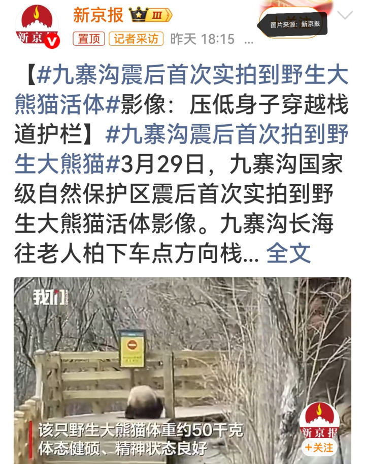 热门话题:#九寨沟震后初度拍到野生大熊猫# #野生大熊猫穿越九寨沟栈谈# #震青年态竖立生效显赫#