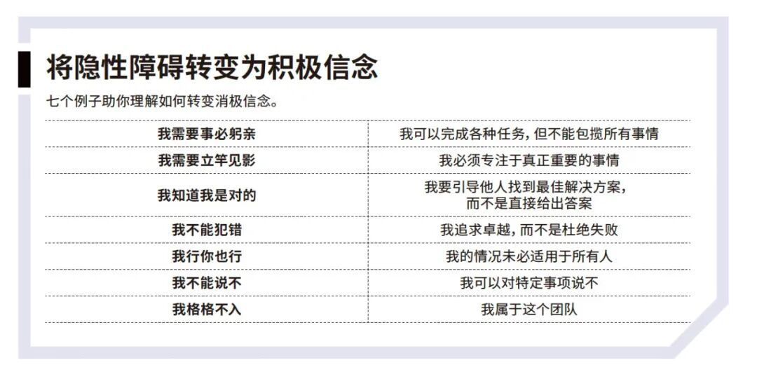 淌若遇到了作事瓶颈,或者无法在职责中阐扬出预期的影响,那你很可能受到了上述某个信念的进犯。好音问是,我从过往训戒中纪念出了三步框架,它们适应公认的行动矫正原则,而况在我领导的携带者身上得到了到手考据。