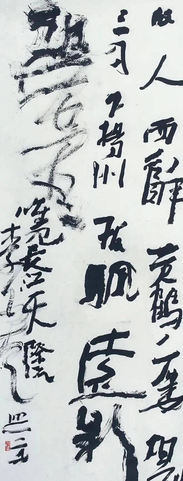 墨色实际 ,亚搏app最新版本干湿浓淡变化密集,枯笔飞白与涨墨晕染对比强烈,模仿西方详尽进展主义,以“线条心思”重构笔法逻辑 增强作品档次感,使“丑”中蕴含丰富的情怀抒发,幸免单调乏味。