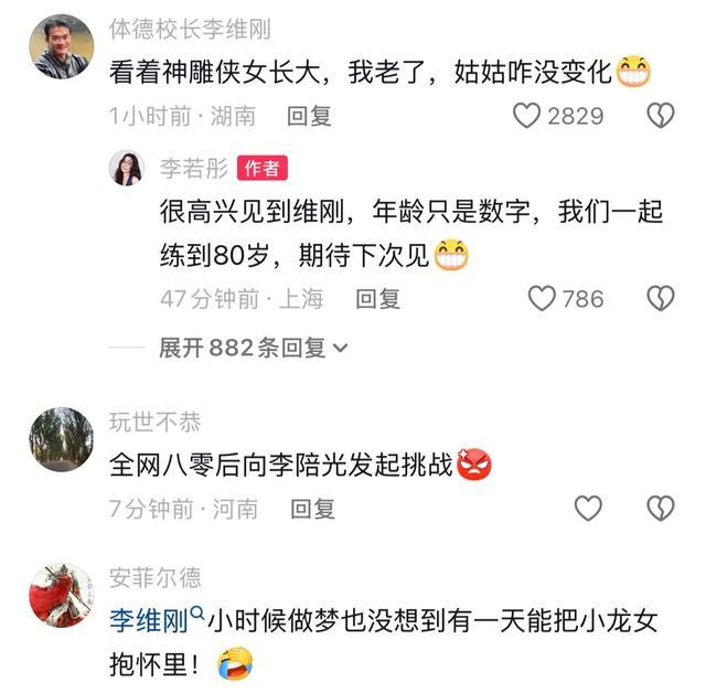 从视频来看,59岁的李若彤还是仙女感总共,和过去莫得什么两样,景色绝顶可以,批驳区,李维刚示意: 看着神雕侠女长大,我老了,姑妈咋没变化。随后,李若彤回复:很欢欣见到维刚,年岁仅仅数字,咱们一皆练到80岁,期待下次见。李维刚和李若彤两东说念主互动看点总共。