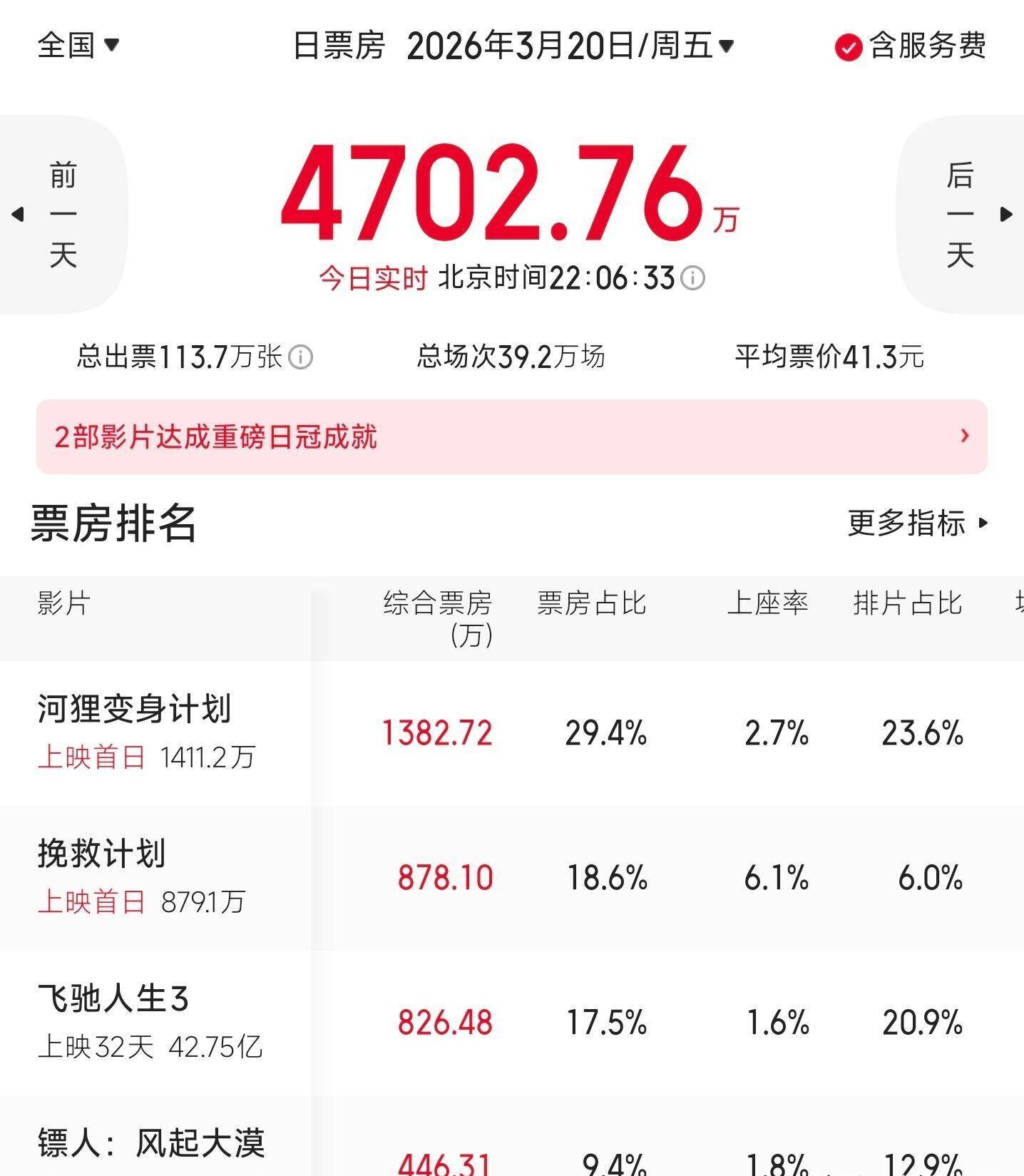 顶着高司令和甜茶的两大真东谈主夹攻,《河狸变身诡计》径直空降单日榜第一,截至到发稿前票房1382万,展望最终票房1.23亿。
