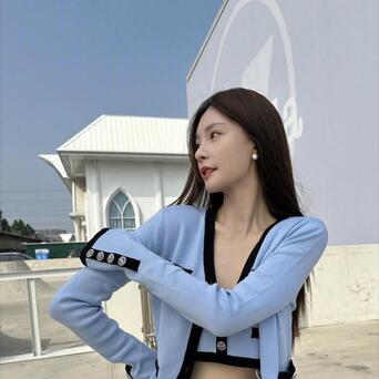 无论是知晓的蓝黑撞色小香风开衫,还是又酷又飒的黑皮衣配牛仔裤