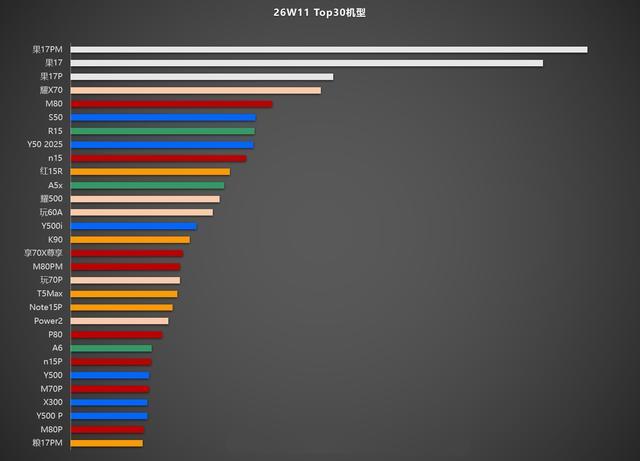 今天共享的是2026年W11国内手机畅销榜,和上周比拟有更多的国产旗舰上榜,有点小偶然的是iPhone17e,本周开售的它并未登上畅销榜TIP30。iPhone17 Pro重回榜单第三名,华为Mate80排行第五,iPhone17Pro Max不时遥遥卓著。以下是榜单的堤防实践。(数据起原智谋芯片案内东谈主)