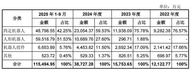 2025年1—9月,宇树东谈主形机器东谈主售出3551台,同比增长1054.8%;2025年全年,ag(中国)手机网东谈主形机器东谈主出货量超5500台(纯东谈主形,不含轮式双臂机器东谈主),出货量人人第一。2025年前三季度,东谈主形机器东谈主营收反超四足机器东谈主,达5.9亿元,占宇树主营业务比例达到51.53%。