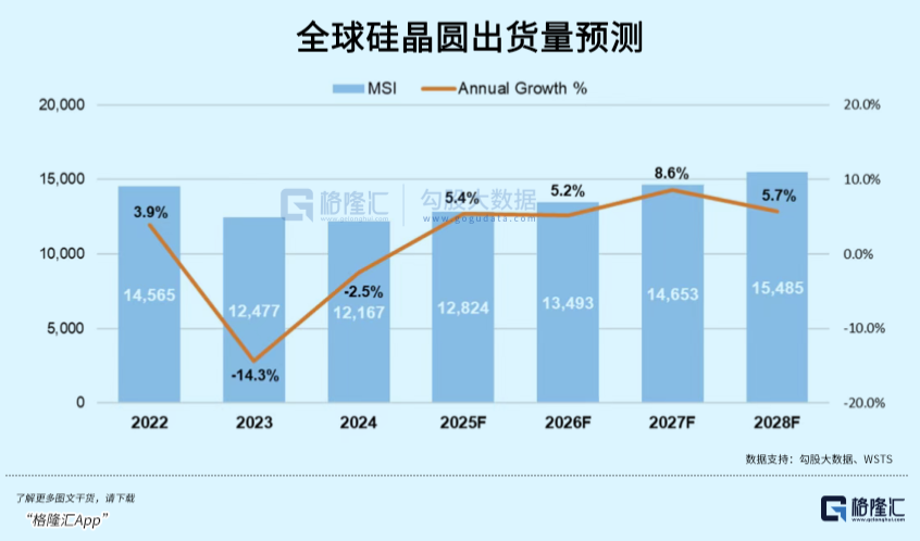 SEMI在其年度硅晶圆出货量预测阐扬中指出,2025年全球硅晶圆出货量预测将增长5.4%,达到12,824百万浅薄英寸(MSI),并将在2028年前络续增长,届时市集有望达到 15,485百万浅薄英寸(MSI)的新行业记录。