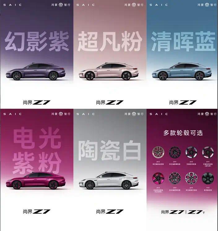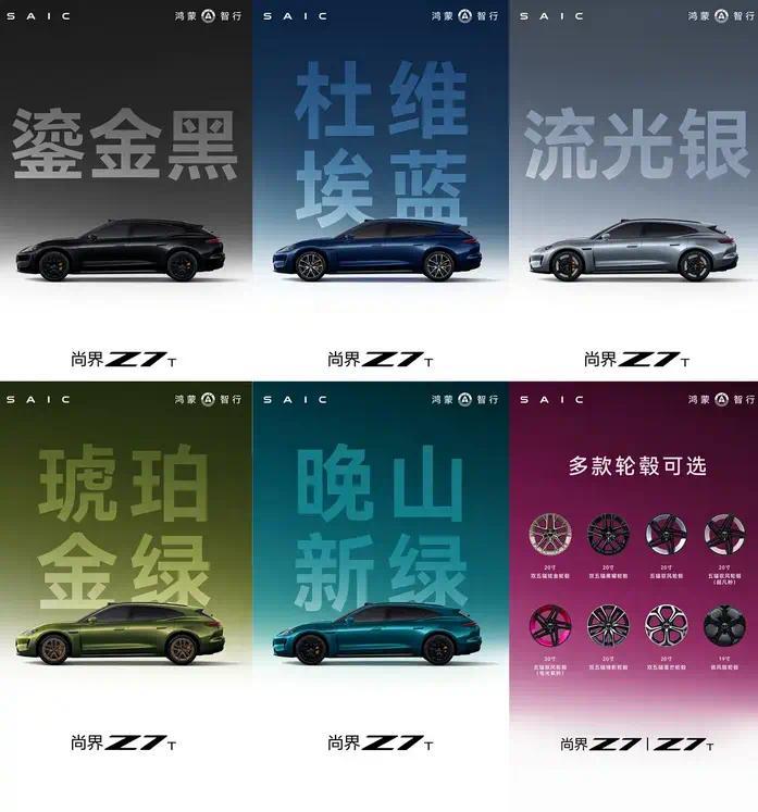 从官方发布的海报来看,尚界Z7T将提供5款配色,鉴别是鎏金黑、杜维埃蓝、流光银、琥珀金绿、晚山新绿;尚界Z7则将提供幻影紫、超凡粉、清晖蓝、电光紫粉、陶瓷白供用户遴荐。