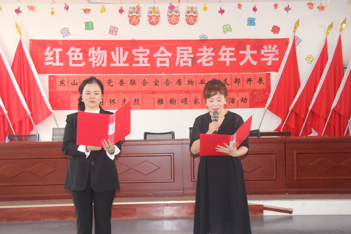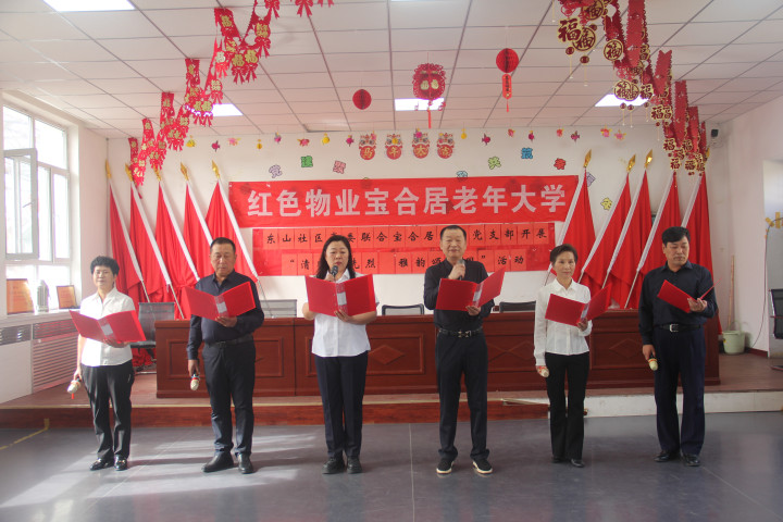 行动现场,红色物业宝合居老年大学诵读队隆重树立,杨建敏、刘进喜折柳当选队长、副队长。据悉,诵读队的树立,不仅为社区老年一又友们搭建了展示自我、表达心扉的平台,更以诵读为纽带,让老年群体成为红色精神的传播者、家国心扉的践行者,进一步丰富了“红色物业+养老”的服务内涵,让红色文化在社区落地生根。