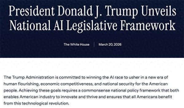 这份名为《国度AI立法框架》的文献涵盖六大场所,实质触及保护儿童免受某些AI生成实质的影响、确保数据中心扩展不会导致住户电价高涨、保护版权等一系列与AI关系的举措。