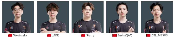 中国权门战队,领有狙击手三叶z4KR、谄媚西瓜Westmelon、冷面枪男Starry、国产直升机EmiliaQAQ和苏神C4LLM3SU3。他们在预选赛败者组众一穿六强势晋级,展现了他们的执意韧性,期待他们在家门口CAC打出不俗推崇。